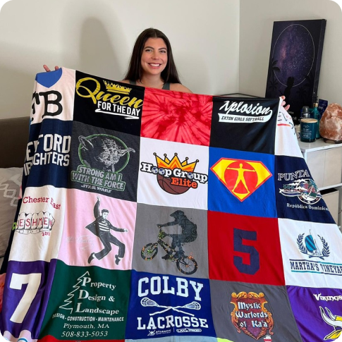 I had been wanting to make a t-shirt blanket forever, originally as a DIY, but after realizing that wasn't going to happen it was a a little nerve wracking to put all of my t-shirt memories into someone else's hands; particularly because some of the shirts I was sending weren't typical (sorority jersey with thick letter embroidery, etc). The blanket turned out perfect, exactly as I had specified in my order and very well done!!! The communication along the way was also great, keeping you updated that your memories had been received, processed and shipped back. Thank you!!!