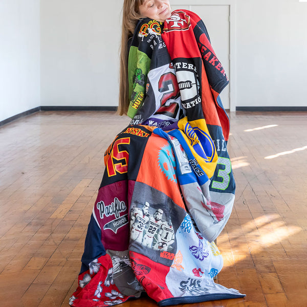 Turn your favorite t-shirts into a cozy keepsake with our King T-Shirt Blanket, backed with warm, soft fleece for comfort and durability. For this size, you’ll need 64 t-shirts.